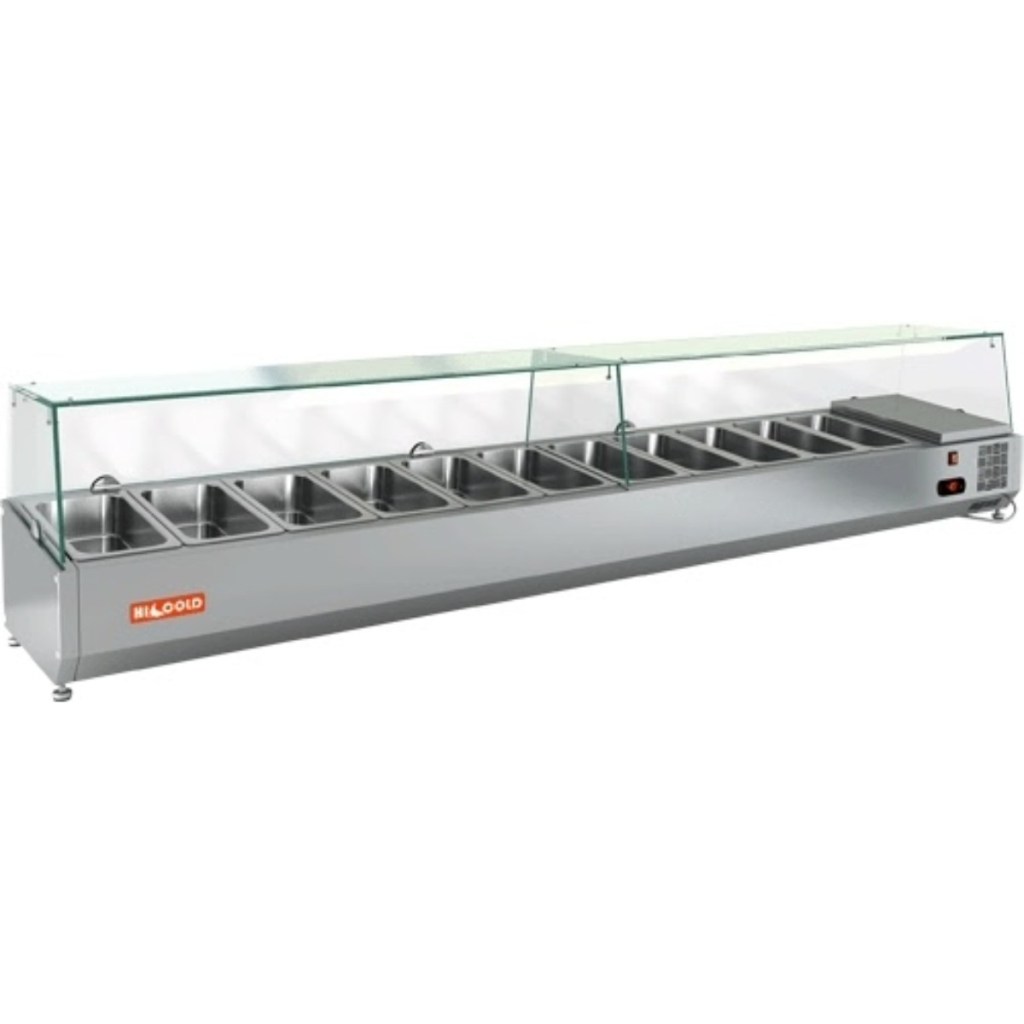 Каталог оборудования Холодильное оборудованиеВитрины для ингредиентовВитрина холодильная для ингредиентов HICOLD VRTG 2280 к PZ3 (1/3) Витрина холодильная для ингредиентов HICOLD VRTG 2280 к PZ3 (1/3) Код товара: 064-658 Поделиться: WhatsAppTelegram СравнитьДобавить в КПВ избранное 0 84 609 ₽ В корзину 0 шт Под заказСамовывоз сегодня бесплатно Взять в кредит Купить в лизинг Получить консультацию в WhatsApp Описание Характеристики Отзывы 0 Инструкции 3 Витрина холодильная для ингредиентов HICOLD VRTG 2280 к PZ3 (1/3) предназначена для охлаждения, кратковременного хранения и демонстрации ингредиентов, салатов и готовых блюд на предприятиях общественного питания и торговли. Устанавливается на холодильные столы для пиццы серии PZ3 благодаря встроенным креплениям в нижней части корпуса. На фото показана аналогичная модель с настольной установкой. Ключевые особенности: Корпус из нержавеющей стали — долговечность, простота ухода. Электронная панель управления — точная регулировка температуры. Исполнение G — стеклянная надстройка для удобного обзора продуктов. Высота витрины — 459 мм — компактное размещение на рабочей поверхности. Вместимость: 11xGN1/3 — рациональная организация хранения (гастроёмкости приобретаются отдельно). Совместимые модели столов: PZ3-1111/SN, PZ3-1111/GN HICOLD VRTG 2280 к PZ3 (1/3) — это профессиональная настольная витрина, которая сочетает компактные размеры, современное управление и высокое качество охлаждения. Отличный выбор для пиццерий, ресторанов и кафе, где важны удобство доступа, скорость работы и эффектная подача продуктов.Изображение товара, представленного на фото, может отличаться от его фактического вида. Показать все Габаритные размеры2280×385×459 ммДиапазон рабочей температурыот +2 до +7 °CДлина2280 ммГлубина385 ммВысота459 ммТип крышкиСтеклянная Гастроемкостей11 штТип гастроемкостейGN1/3 Мощность150 ВтРасход электроэнергии в сутки0,15 кВтНапряжение220 ВТип охлажденияСтатическое Материал изготовленияНержавеющая сталь ХладагентR134 Мощность0,15 кВтВес нетто65 кгВес брутто109 кгТип оттайкиРучная Габариты в упаковке2380×485×559 ммБрендHicold Оставить отзыв Еще никто не оставил отзыв на этот товар Инструкция на HICOLD VRTG 2280 к PZ3.pdfСхема установки на стол.jpgДекларация о соответствии.pdf Похожие товары Перейти в каталог Под заказ 47 673 ₽ Витрина холодильная для ингредиентов HICOLD VRTU 1000 к PZE3 (1/3) В наличии 39 621 ₽ Витрина холодильная для ингредиентов ФИНИСТ "ToppingBox" НХВк-4 В наличии 37 171 ₽ Витрина холодильная для ингредиентов HURAKAN HKN-VRX1200/380 Под заказ 61 660 ₽ Витрина холодильная для ингредиентов HICOLD VRTO 2360 1/4 В наличии 58 050 ₽ Витрина холодильная для ингредиентов Tatra TVR2000-10GN1/4 Под заказ 58 527 ₽ Витрина холодильная для ингредиентов HICOLD VRTG 1000 1/3 В наличии 95 391 ₽ Витрина холодильная для ингредиентов TEFCOLD VK38-160 В наличии 37 831 ₽ Витрина холодильная для ингредиентов Cooleq VRX 1500/330 С этим товаром покупают Под заказ 108 891 ₽ Стол морозильный HiCold SN 1/BT Под заказ 51 621 ₽ Льдогенератор HURAKAN HKN-IMF20 (пальчики) В наличии 68 097 ₽ Шкаф холодильный Polair СМ 105-S