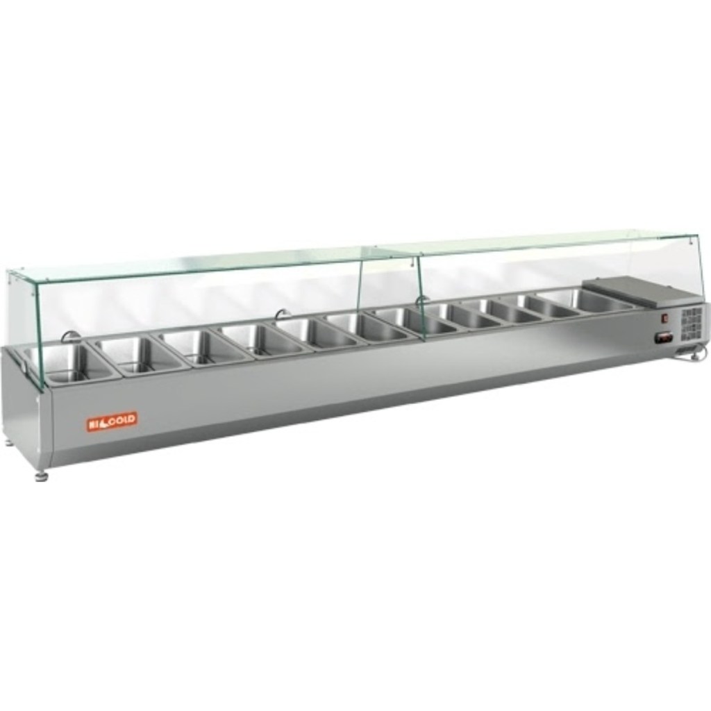 Каталог оборудования Холодильное оборудованиеВитрины для ингредиентовВитрина холодильная для ингредиентов HICOLD VRTG 2360 1/3 Витрина холодильная для ингредиентов HICOLD VRTG 2360 1/3 Код товара: 064-449 Поделиться: WhatsAppTelegram СравнитьДобавить в КПВ избранное 0 89 847 ₽ В корзину 0 шт Под заказСамовывоз сегодня бесплатно Взять в кредит Купить в лизинг Получить консультацию в WhatsApp Описание Характеристики Отзывы 0 Инструкции 2 Витрина холодильная для ингредиентов HICOLD VRTG 2360 1/3 предназначена для охлаждения, кратковременного хранения и наглядной демонстрации ингредиентов, салатов и готовых блюд на предприятиях общественного питания и в торговых точках. Гастроёмкости в комплект не входят, приобретаются отдельно. Основные особенности: Корпус выполнен из нержавеющей стали, обеспечивая долговечность и легкость в уходе; Электронная панель управления для точной настройки температуры; Модель с надстройкой из стекла (исполнение G) для удобной демонстрации продуктов; Высота витрины — 225 мм, высота стеклянной надстройки — 205 мм; Вместимость: 10 гастроёмкостей GN1/3 + 1 гастроёмкость GN1/2; Опорные ножки для устойчивой установки на столешнице. HICOLD VRTG 2360 1/3 — компактная и функциональная настольная витрина, идеально подходящая для демонстрации и кратковременного хранения продуктов на профессиональной кухне или в торговой зоне.Изображение товара, представленного на фото, может отличаться от его фактического вида. Показать все Габаритные размеры2360×385×459 ммДиапазон рабочей температурыот +2 до +7 °CДлина2360 ммГлубина385 ммВысота459 ммТип крышкиСтеклянная Гастроемкостей11 штТип гастроемкостейGN1/3, GN1/2 Мощность0,15 ВтНапряжение220 ВТип охлажденияСтатическое Материал изготовленияНержавеющая сталь ХладагентR134 Вес нетто67 кгВес брутто107 кгТип оттайкиРучная Габариты в упаковке2460×485×559 ммБрендHicold Оставить отзыв Еще никто не оставил отзыв на этот товар Инструкция на HICOLD VRTG 2360.pdfДекларация о соответствии.pdf Похожие товары Перейти в каталог Под заказ 46 276 ₽ Витрина холодильная для ингредиентов Tatra TVR1200-5GN1/4 Под заказ 55 828 ₽ Витрина холодильная для ингредиентов HICOLD VRTO 1915 Под заказ 72 730 ₽ Витрина холодильная для ингредиентов HICOLD VRTG 1970 к PZЕ3 (1/3) Под заказ 56 800 ₽ Витрина холодильная для ингредиентов HICOLD VRTO 2010 Под заказ 61 119 ₽ Витрина холодильная для ингредиентов HICOLD VRTO 2280 1/3 Под заказ 50 860 ₽ Витрина холодильная для ингредиентов HICOLD VRTU 1390 1/4 В наличии 49 793 ₽ Витрина холодильная для ингредиентов TEFCOLD VK33-150 В наличии 52 746 ₽ Витрина холодильная для ингредиентов TEFCOLD VK38-150 С этим товаром покупают В наличии 90 590 ₽ Шкаф холодильный TEFCOLD FSC1380 Под заказ 124 291 ₽ Шкаф холодильный Abat ШХ-0,5-01 нерж. Под заказ 132 278 ₽ Шкаф морозильный Ангара 800 М В наличии 86 503 ₽ Шкаф холодильный универсальный Arkto V0.5-S Под заказ 171 328 ₽ Шкаф морозильный Рапсодия R 1400 LX В наличии 340 218 ₽ Шкаф холодильный Tatra TBT 1121 C В наличии 95 191 ₽ Шкаф холодильный универсальный Polair CV 105-S В наличии 94 265 ₽ Шкаф морозильный для икры и пресервов Polair DP107-S Ранее просмотрено Под заказ 55 287 ₽ Витрина холодильная для ингредиентов HICOLD VRTU 1835 1/4