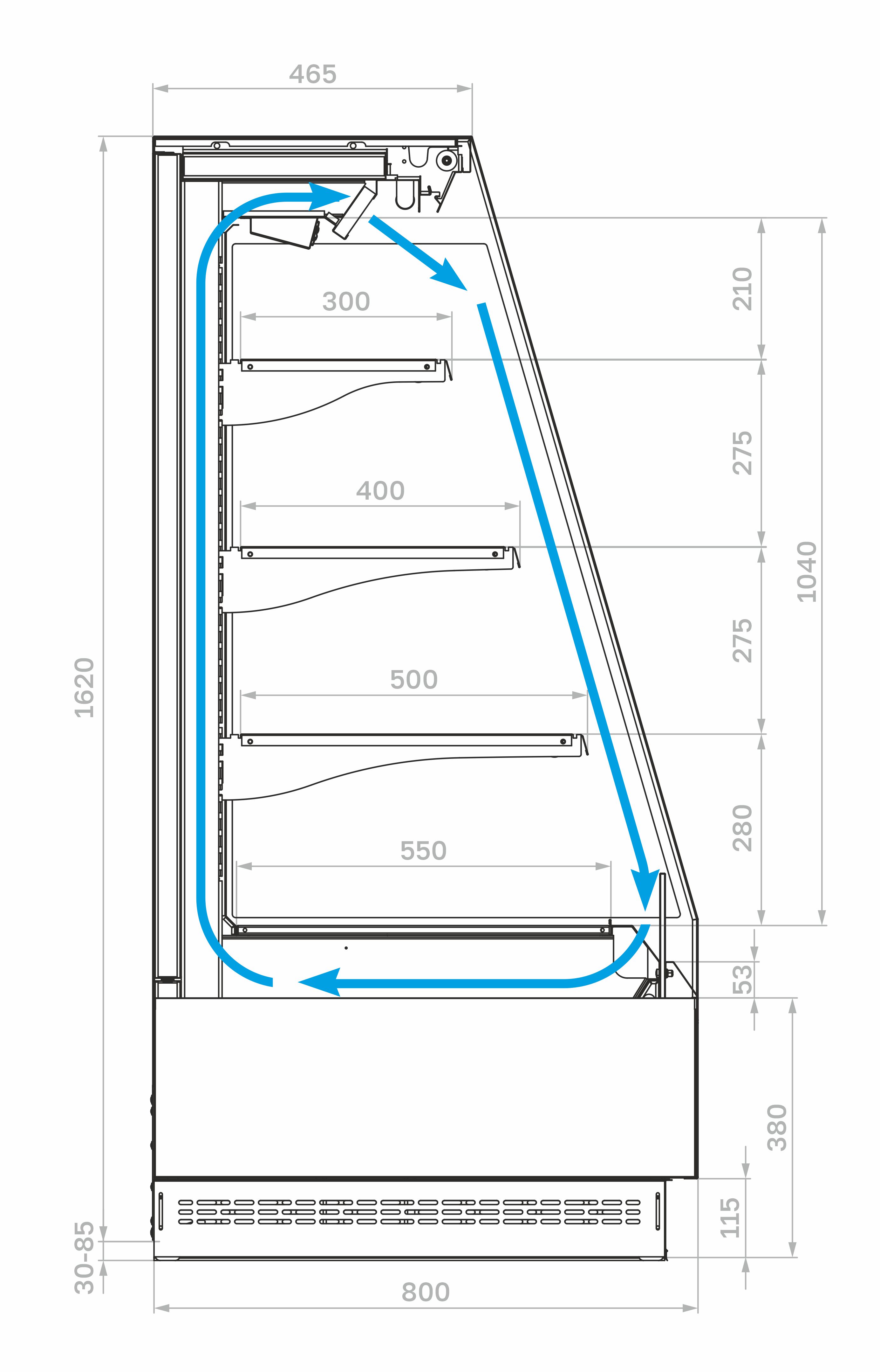 Боковины – металлические панели с зеркальным покрытием для улучшения обзора продукции и визуального расширения пространства.