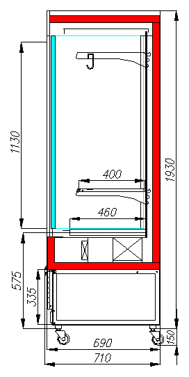 • Размеры выкладки: глубина зоны — 460 мм, глубина полок — 400 мм.