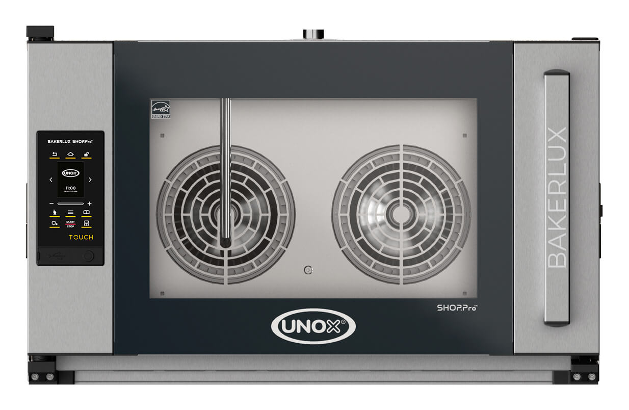 Каталог оборудования Тепловое оборудование для общепитаКонвекционные печиКонвекционная печь UNOX XEFT-04EU-ETRV Конвекционная печь UNOX XEFT-04EU-ETRV Код товара: 009-558 Поделиться: WhatsAppTelegram 0 Цена по запросу Получить консультацию в Max Получить консультацию в Max Описание Характеристики Отзывы 0 Электрический пекарский шкаф UNOX XEFT-04EU-ETRV серии BAKERLUX SHOP.Pro™ предназначен для допекания замороженных изделий и выпекания любых хлебобулочных или кондитерских изделий полного цикла. Инновационные технологии обеспечивают максимальное качество готового продукта и простоту использования в любых условиях. Возможность установки печей одна на другую позволяет подстраиваться под различные объёмы и потребности. Представленная модель оснащена электронной панелью управления версии TOUCH, обеспечивающей сохранение в памяти программ выпечки с изображениями и быстроту интуитивного программирования. Рекомендуется к применению в пекарнях и кондитерских, а также в супермаркетах с собственной кухней. 3 режима работы: Конвекция при температуре от 30 до 260 °C Пароконвекция при температуре от 48 до 260 °C Предварительный нагрев до 260 °C Программирование: Технология искусственного интеллекта DATA DRIVEN COOKING: сбор данных, обработка информации, анализ режимов работы и предоставление рекомендаций в зависимости от индивидуальных потребностей пользователя Встроенная память на 99 программ приготовления: каждая включает в себя до 9-ти шагов и возможность предварительного нагрева рабочей камеры Возможность добавления имени, номера и изображения для каждой программы Технологии: AIR.Plus - оптимальное распределение воздуха внутри печи 2 вентилятора с возможностью реверсивного вращения 2 скорости вращения вентиляторов DRY.Plus - удаление избыточной влажности для создания хрустящей корочки и придания румянца готовым блюдам STEAM.Plus - обеспечение идеального уровня влажности в печи Комби-режим, выпекание с конвекцией и увлажнением (0-20-40-60-80-100%) MAXI.LINK - экономия энергии, времени и пространства на кухне Позволяет устанавливать печи одна на другую, предоставляя возможность одновременного приготовления различных блюд с индивидуальными требованиями к температуре, уровню влажности и времени приготовления Protek.SAFE™ - качественная теплоизоляция и максимальная безопасность Надёжная теплоизоляция обеспечивает максимальную эффективность печи и безопасность работы с оборудованием Мгновенная остановка вентиляторов во время открывания дверцы для предотвращения потери энергии Дополнительные функции: Отображение оставшегося времени приготовления Режим "INF" - непрерывная работа печи Отображение номинального и фактического времени, температуры и влажности в камере, скорости вращения вентиляторов Возможность измерения температуры в °C или °F Особенности конструкции: Лёгкий высокопрочный корпус из современных материалов Изготовленная из высокопрочной нержавеющей стали AISI 304 рабочая камера с закруглёнными углами гарантирует идеальную гигиеничность и обеспечивает удобство мытья Светодиодное освещение камеры Герметичная панель управления для предотвращения попадания пара на электронную плату (степень защиты IPX4) Сенсорный ЖК-дисплей с диагональю 2,4" Ручное открывание дверцы справа налево Электромеханический автоматический замок Soft-close Эргономичная ручка дверцы Датчик открытия двери Внутр