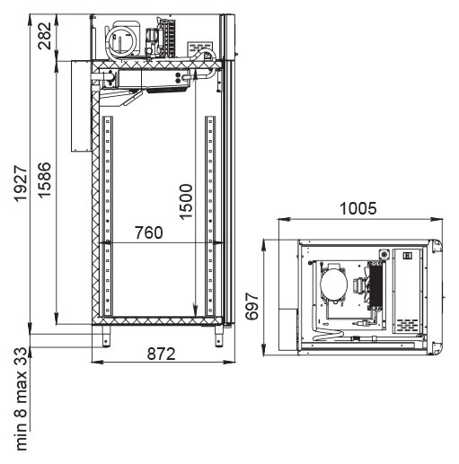 Каталог оборудования Холодильное оборудованиеШкафы холодильныеСпециализированные холодильные шкафыШкаф холодильный для вызревания салями Polair CS107 Salami черный, со стеклом Шкаф холодильный для вызревания салями Polair CS107 Salami черный, со стеклом Код товара: 062-632 Поделиться: WhatsAppTelegram СравнитьДобавить в КПВ избранное 0 373 915 ₽ В корзину 0 шт Под заказСамовывоз сегодня бесплатно Взять в кредит Купить в лизинг Получить консультацию в WhatsApp Описание Характеристики Отзывы 0 Инструкции 5 Шкаф холодильный для вызревания салями Polair CS107 Salami черный, со стеклом предназначен для приготовления и хранения салями, сыровяленых колбас и других мясных деликатесов на предприятиях общественного питания и торговли. Цельнозаливной монолитный корпус выполнен из нержавеющей стали снаружи и внутри (кроме задней стенки), что обеспечивает высокую прочность, долговечность и удобство ухода. Оборудование рассчитано на работу при температуре окружающей среды до +40 °С. Особенности: Динамическое охлаждение с мягким обдувом без заветривания Верхнее расположение агрегата Автоматическая оттайка с системой испарения конденсата Русифицированная многофункциональная панель управления с дисплеем диагональю 5" Возможность создания и сохранения индивидуальных программ Встроенный ультразвуковой увлажнитель (необходима подача очищенной воды и подключение к канализации) UV-лампа для обеззараживания воздуха внутри камеры Три уровня подвесов с тремя перекладинами и крюками на каждом уровне для удобной развески колбас Регулируемый уровень влажности: от 60 до 95 % Распашная дверь с заливной теплоизоляцией, встроенной ручкой и магнитным уплотнителем Отключаемая LED-подсветка камеры Штампованное углубление в дне корпуса для удобства ухода Педаль для удобного открытия двери Хладагент R290 (пропан) Толщина стенки корпуса: 43 мм Polair CS107 Salami черный, со стеклом — это профессиональный холодильный шкаф, идеально подходящий для цехов, гастробаров и мясных мастерских. Он обеспечивает оптимальные условия для дозревания и хранения деликатесов за счёт точного контроля температуры и влажности, продуманной конструкции и расширенного функционала. Такой шкаф помогает сохранять качество и вкус продукции на высоком уровне.Изображение товара, представленного на фото, может отличаться от его фактического вида. Показать все Габаритные размеры697×1005×1960 ммДиапазон рабочей температурыот -2 до +30 °CДлина697 ммШирина1005 ммВысота1960 ммОбъём700 лКол-во дверей1 Тип двериСтеклянная Уровень влажностиот 60 до 95 %Холодильный агрегатВстроенный Тип оттайкиАвтоматическая Тип охлажденияДинамическое ПодсветкаЕсть UV-лампаЕсть ХладагентR290 Вес нетто160 кгВес брутто190 кгБрендPolairВсе специализированные холодильные шкафы Из нержавейкиВсе специализированные холодильные шкафы Стеклянная дверь Оставить отзыв Еще никто не оставил отзыв на этот товар Схема POLAIR CS107 Salami.jpgИнструкция на POLAIR CS107 Salami.pdfБрошюра на POLAIR CS107 Salami.pdfДекларация о соответствии.pdfСертификат соответствия.pdf Похожие товары Перейти в каталог В наличии 405 365 ₽ Шкаф холодильный для хлебопекарных производств Polair CS107 Bakery Br черный, со стеклом (Тип 2) Под заказ 389 300 ₽ Шкаф холодильный для вызревания мяса Polair CS107 Meat (Тип 1) В наличии 397 290 ₽ Шкаф холодильный для хлебопекарных производств Polair CS107 Bakery Br (Тип 1) Под заказ 252 314 ₽ Шкаф холодильный для вызревания мяса