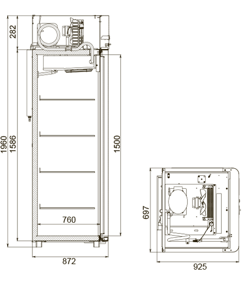 Каталог оборудования Холодильное оборудованиеШкафы холодильныеШкафы холодильные универсальные от -5 до +5 °СШкаф холодильный универсальный Polair CV107-Sm Alu Шкаф холодильный универсальный Polair CV107-Sm Alu Код товара: 062-611 Поделиться: WhatsAppTelegram СравнитьДобавить в КПВ избранное 0 129 370 ₽ В корзину 0 шт Под заказСамовывоз сегодня бесплатно Взять в кредит Купить в лизинг Получить консультацию в WhatsApp Описание Характеристики Отзывы 0 Инструкции 4 Шкаф холодильный универсальный Polair CV107-Sm Alu предназначен для демонстрации и надежного хранения продуктов на предприятиях общественного питания и торговли. Цельнозаливной корпус выполнен из стали с полимерным покрытием и оснащен алюминиевыми профилями, что обеспечивает высокую прочность конструкции и долговечность, а также подчеркивает современный премиальный дизайн. Шкаф работает при температуре окружающей среды до 40 °С и влажности воздуха до 80%. Особенности модели: Контрольная панель с быстрым доступом к настройкам, удобным возвратом в предыдущее меню и возможностью полного отключения без отдельной кнопки. Жидкокристаллический дисплей для наглядного отображения параметров. Клапан Шредера для обслуживания холодильной системы. Компенсационный клапан с ПЭНом обогрева, ПЭНы обогрева трубки слива конденсата и дверного проема — предотвращают образование льда и обеспечивают надежную работу. Распашной тип двери с возможностью изменения стороны открывания, что делает установку более гибкой. Полностью интегрированные ручки, удобные и стильные. Эластичные уплотнители с магнитными вставками для максимальной герметизации. Внутренняя подсветка вынесена на нижнюю часть фронтальной панели. Микропереключатель для автоматического отключения вентилятора и включения подсветки при открытии дверей. Регулируемые по высоте ножки для устойчивости на любом полу. Педаль для удобного открывания без рук. Замок для защиты содержимого. Высокая допустимая нагрузка на полку — до 40 кг. Размер полки: GN 2/1 (530×650 мм). Толщина стенки корпуса — 43 мм, что обеспечивает отличную теплоизоляцию. Polair CV107-Sm Alu — это функциональный и надежный холодильный шкаф с современным дизайном, который обеспечивает максимальную сохранность и удобный доступ к продуктам. Отлично подходит для ресторанов, кафе и магазинов, где важны надежность, стиль и энергоэффективность.Изображение товара, представленного на фото, может отличаться от его фактического вида. Показать все Габаритные размеры697×925×1960 ммДиапазон рабочей температурыот -5 до +5 °CДлина697 ммГлубина925 ммВысота1960 ммОбъём700 лРазмер полки530×650 ммКоличество полок4 штКоличество дверей1 штТип оттайкиАвтоматическая Тип охлажденияДинамическое Тип управленияЭлектронное Материал корпусаНержавеющая сталь Тип двериМеталлическая ЗамокЕсть Способ открыванияРаспашные ХладагентR290 Холодильный агрегатВстроенный Расположение агрегатаВерхнее Потребление электроэнергии в сутки4,5 кВтПотребляемая мощность0,4 кВтНапряжение220 ВГабариты в упаковке800×1000×2150 ммВес нетто113 кгВес брутто138 кгБрендPolairВсе шкафы холодильные универсальные от -5 до +5 °С Из нержавейки Оставить отзыв Еще никто не оставил отзыв на этот товар Схема POLAIR CV107-Sm.jpgИнструкция на POLAIR CV107-Sm.pdfДекларация о соответствии.pdfСертификат соответствия.pdf Похожие товары Перейти в каталог Под заказ 187 053 ₽ Шкаф холодильный универсальный Carbom