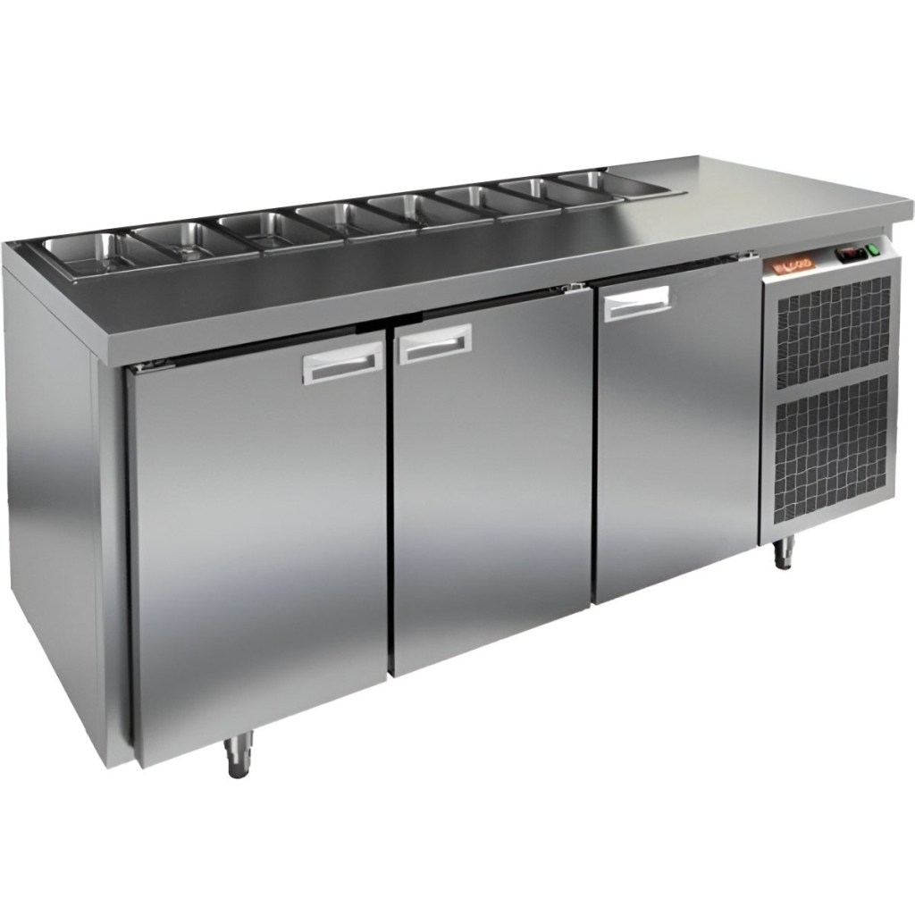 Каталог оборудования Холодильное оборудованиеСтолы охлаждаемыеСтолы холодильные для салатовСтол холодильный для салатов HiCold SL1-111SN (1/3) О без крышки Стол холодильный для салатов HiCold SL1-111SN (1/3) О без крышки Код товара: 064-522 Поделиться: WhatsAppTelegram СравнитьДобавить в КПВ избранное 0 163 162 ₽ В корзину 0 шт Под заказСамовывоз сегодня бесплатно Взять в кредит Купить в лизинг Получить консультацию в WhatsApp Описание Характеристики Отзывы 0 Инструкции 2 Стол холодильный для салатов HiCold SL1-111SN (1/3) О без крышки предназначен для предприятий общественного питания и торговли. Он обеспечивает хранение и подготовку ингредиентов для пиццы, салатов и других блюд, а также охлаждение и кратковременное хранение скоропортящихся продуктов. Модель сочетает рабочую поверхность и холодильный объем, позволяя повару иметь все необходимые компоненты под рукой. Корпус и столешница выполнены из нержавеющей стали, обеспечивая надежность и долговечность. Особенности: Динамическая система охлаждения — равномерное распределение температуры внутри холодильного объема. Автоматическая оттайка — упрощает уход за оборудованием. Электронная панель управления — точная настройка температуры и режимов работы. 3 вместительные внутренние полки формата GN 1/1 — удобное хранение ингредиентов. Автоматические доводчики дверей с фиксатором открытого положения — комфорт и безопасность работы. Легкозаменяемые магнитные уплотнители — простота обслуживания. Открытая агрегатная часть — облегчает доступ для обслуживания. Регулируемые по высоте ножки — адаптация к рабочей поверхности. Столешница без борта и без крышки, толщина столешницы и теплоизоляции 50 мм — надежная защита и удобство работы. Размер полки: 430×320мм (GN 1/1) Максимальная глубина гастроемкостей: 100 мм HiCold SL1-111SN (1/3) О без крышки — многофункциональный и надежный стол для профессиональной кухни. Обеспечивает удобство работы, эффективное охлаждение и безопасное хранение продуктов. Мобильная модификация с колёсами позволяет легко перемещать стол, что делает его идеальным для ресторанов, кафе и пиццерий.Изображение товара, представленного на фото, может отличаться от его фактического вида. Показать все Габаритные размеры1835×600×850 ммДиапазон рабочей температурыот +2 до +10 °CРасположение агрегатаБоковое Материал столешницыНержавеющая Тип столаС дверьми Тип двериГлухая Объём435 лКоличество дверей3 штТип гастроемкостейGN 1/3 Размер полки430×320 ммНапряжение220 ВМощность0,46 кВтТип охлажденияДинамический Тип оттайкиАвтоматическая СтолешницаБез борта Вес нетто120 кгВес брутто183 кгБрендHicold Оставить отзыв Еще никто не оставил отзыв на этот товар Паспорт на HICOLD SL1-111SN О.pdfДекларация о соответствии.pdf Ранее просмотрено Под заказ 163 612 ₽ Стол холодильный для салатов HiCold SL1-111GN (1/3) О без крышки Под заказ 192 411 ₽ Стол холодильный для салатов HiCold SL1-1111GN (1/3) без крышки Под заказ 174 952 ₽ Стол холодильный для салатов HiCold SLE2-111GN (1/6) О З М с крышкой Под заказ 305 992 ₽ Стол холодильный для салатов HiCold SL1-333GN (1/3) с крышкой Под заказ 320 392 ₽ Стол холодильный для салатов HiCold SL1-2222GN (1/3) с крышкой Под заказ 107 451 ₽ Стол холодильный для салатов HiCold SLE3-1GN полипропилен, с крышкой Под заказ 204 921 ₽ Стол холодильный для салатов HiCold SL1-22GN (1/3) О с крышкой