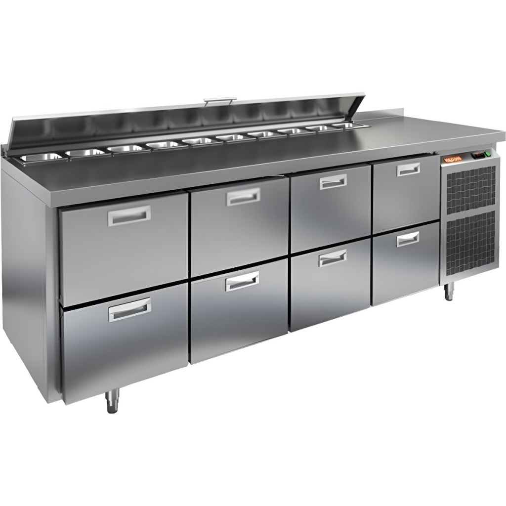 Каталог оборудования Холодильное оборудованиеСтолы охлаждаемыеСтолы холодильные для салатовСтол холодильный для салатов HiCold SL1-2222GN (1/3) с крышкой Стол холодильный для салатов HiCold SL1-2222GN (1/3) с крышкой Код товара: 064-840 Поделиться: WhatsAppTelegram СравнитьДобавить в КПВ избранное 0 320 392 ₽ В корзину 0 шт Под заказСамовывоз сегодня бесплатно Взять в кредит Купить в лизинг Получить консультацию в WhatsApp Описание Характеристики Отзывы 0 Инструкции 2 Стол холодильный для салатов HiCold SL1-2222GN (1/3) с крышкой предназначен для использования на предприятиях общественного питания и торговли. Он подходит для хранения, обработки и кратковременного охлаждения ингредиентов, применяемых при приготовлении пиццы, салатов, закусок и других блюд. Модель совмещает охлаждаемый объем и рабочую поверхность, что значительно повышает удобство и скорость работы персонала. Корпус и столешница выполнены из прочной и гигиеничной нержавеющей стали, устойчивой к влаге, загрязнениям и механическим повреждениям. Металлическая крышка защищает продукты от загрязнений и сохраняет их свежесть. Особенности модели: Электронная панель управления — точная настройка температуры. Салат-бар на 10 гастроемкостей — быстрый доступ к ингредиентам. 8 выдвижных ящика — удобное размещение продуктов. Съёмные магнитные уплотнители — герметичность и стабильная температура. Открытая агрегатная часть — лёгкое обслуживание. Регулируемые ножки — установка на любой поверхности. Глубина гастроемкостей до 150 мм, столешница и теплоизоляция — 50 мм. Высота борта — 50 мм — защита рабочей поверхности. HiCold SL1-2222GN (1/3) с крышкой — универсальное и функциональное решение для профессиональной кухни, позволяющее оптимизировать рабочие процессы и повысить производительность за счет удобного хранения и быстрого доступа к ингредиентам.Изображение товара, представленного на фото, может отличаться от его фактического вида. Показать все Габаритные размеры2280×700×850 ммДиапазон рабочей температурыот +2 до +10 °CРасположение агрегатаБоковое Материал столешницыНержавеющая Тип столаС ящиками Объём660 лТип гастроемкостейGN 1/3 Количество ящиков8 штРазмер полки530×325 ммНапряжение220 ВМощность0,48 кВтТип охлажденияДинамическое Тип оттайкиАвтоматическая СтолешницаС бортом Габариты в упаковке2420×850×1000 ммВес нетто145 кгВес брутто211 кгБрендHicold Оставить отзыв Еще никто не оставил отзыв на этот товар Паспорт на HICOLD SL1-2222GN.pdfДекларация о соответствии.pdf Ранее просмотрено Под заказ 107 451 ₽ Стол холодильный для салатов HiCold SLE3-1GN полипропилен, с крышкой Под заказ 204 921 ₽ Стол холодильный для салатов HiCold SL1-22GN (1/3) О с крышкой Под заказ 143 722 ₽ Стол холодильный для салатов HiCold SL1-11GN (1/3) О с крышкой Под заказ 103 041 ₽ Стол холодильный для салатов HiCold SLE3-1GN полипропилен, без крышки Под заказ 166 221 ₽ Стол холодильный для салатов HiCold SL1-11GN (1/3) О М с крышкой Под заказ 2 822 456 ₽ Камера шоковой заморозки Polair BCF 80.1.T4inox Под заказ 91 546 ₽ Витрина кондитерская Carboma K70 N 1,3 (K70 N 1,3-1 LIGHT FLANDRIA) хлебная, со стеклом