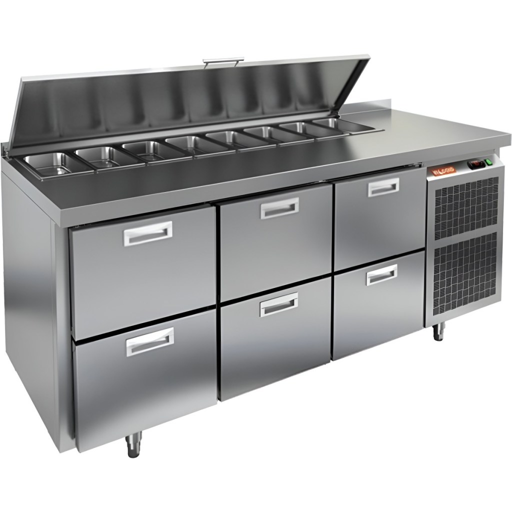 Каталог оборудования Холодильное оборудованиеСтолы охлаждаемыеСтолы холодильные для салатовСтол холодильный для салатов HiCold SL1-222GN (1/3) с крышкой Стол холодильный для салатов HiCold SL1-222GN (1/3) с крышкой Код товара: 064-844 Поделиться: WhatsAppTelegram СравнитьДобавить в КПВ избранное 0 260 092 ₽ В корзину 0 шт Под заказСамовывоз сегодня бесплатно Взять в кредит Купить в лизинг Получить консультацию в WhatsApp Описание Характеристики Отзывы 0 Инструкции 1 Стол холодильный для салатов HiCold SL1-222GN (1/3) предназначен для использования на предприятиях общественного питания и торговли. Он объединяет рабочую поверхность и охлаждаемый отсек, что делает его удобным решением для хранения, охлаждения и подготовки ингредиентов при приготовлении салатов, пиццы и других блюд. Такая конструкция позволяет повару работать быстрее и эффективнее, так как все необходимые продукты находятся под рукой. Корпус и столешница выполнены из прочной нержавеющей стали, устойчивой к коррозии и легко поддающейся санитарной обработке.Металлическая крышка защищает продукты от загрязнений и сохраняет их свежесть. Особенности модели: Электронная панель управления — точная настройка температурного режима. 6 выдвижных ящика — быстрое размещение и замена продуктов. Вместимость салат-бара — до 8 гастроемкостей глубиной до 100 мм. Автоматические доводчики — комфорт при загрузке/выгрузке. Легкозаменяемые магнитные уплотнители — надежная герметичность. Открытая агрегатная часть — быстрый доступ для обслуживания. Регулируемые по высоте ножки — устойчивость даже на неровном полу. Толщина столешницы, борта и теплоизоляции — 50 мм, что обеспечивает прочность и энергоэффективность конструкции. HiCold SL1-222GN (1/3) — практичное и удобное решение для профессиональной кухни, обеспечивающее удобную подготовку и хранение ингредиентов.Изображение товара, представленного на фото, может отличаться от его фактического вида. Показать все Габаритные размеры1835×700×850 ммДиапазон рабочей температурыот +2 до +10 °CРасположение агрегатаБоковое Материал столешницыНержавеющая Тип столаС ящиками Объём505 лТип гастроемкостейGN 1/3 Количество ящиков6 штРазмер полки530×325 ммНапряжение220 ВМощность0,46 кВтТип охлажденияДинамическое Тип оттайкиАвтоматическая СтолешницаС бортом Габариты в упаковке2000×850×1000 ммВес нетто120 кгВес брутто140 кгБрендHicold Оставить отзыв Еще никто не оставил отзыв на этот товар Декларация о соответствии.pdf Ранее просмотрено Под заказ 149 302 ₽ Стол холодильный для салатов HiCold SLE2-111GN (1/6) О З без крышки Под заказ 43 081 ₽ Дверь холодильная распашная одностворчатая НТ-РДО-800*2100/80 (с металлической рамой) Под заказ 204 921 ₽ Стол холодильный для салатов HiCold SL1-22GN (1/3) О с крышкой Под заказ 143 722 ₽ Стол холодильный для салатов HiCold SL1-11GN (1/3) О с крышкой Под заказ 103 041 ₽ Стол холодильный для салатов HiCold SLE3-1GN полипропилен, без крышки Под заказ 166 221 ₽ Стол холодильный для салатов HiCold SL1-11GN (1/3) О М с крышкой Под заказ 2 822 456 ₽ Камера шоковой заморозки Polair BCF 80.1.T4inox