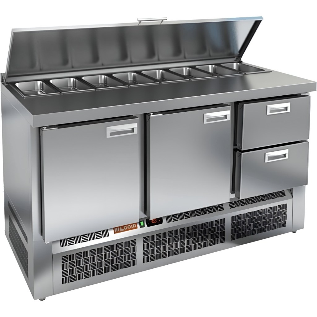Каталог оборудования Холодильное оборудованиеСтолы охлаждаемыеСтолы холодильные для салатовСтол холодильный для салатов HiCold SLE1-112GN (1/3) с крышкой Стол холодильный для салатов HiCold SLE1-112GN (1/3) с крышкой Код товара: 064-902 Поделиться: WhatsAppTelegram СравнитьДобавить в КПВ избранное 0 178 192 ₽ В корзину 0 шт Под заказСамовывоз сегодня бесплатно Взять в кредит Купить в лизинг Получить консультацию в WhatsApp Описание Характеристики Отзывы 0 Инструкции 2 Стол холодильный для салатов HiCold SLE1-112GN (1/3) с крышкой предназначен для профессионального использования в заведениях общественного питания и торговли. Он обеспечивает не только охлаждение и кратковременное хранение продуктов, но и удобную рабочую поверхность для подготовки ингредиентов, что особенно актуально при приготовлении салатов, пиццы и холодных блюд. Корпус и столешница изготовлены из высококачественной нержавеющей стали, что гарантирует долговечность, легкость в уходе и соответствие санитарным требованиям. Металлическая крышка защищает продукты от загрязнений и сохраняет их свежесть. Основные особенности: Электронная панель управления — для точной настройки температуры и простоты эксплуатации. 2 вместительные полки GN 1/1 — обеспечивают организованное хранение продуктов. 2 глухие дверцы с автоматическими доводчиками и фиксацией — повышают удобство использования, особенно при загрузке и выгрузке продуктов. Салат-бар на 8 гастроемкостей — удобно размещает большое количество ингредиентов под рукой. Автоматические доводчики дверей — с фиксацией в открытом положении для комфортной загрузки. Магнитные уплотнители — легко заменяются и обеспечивают надежное уплотнение. Открытая агрегатная часть — облегчает доступ для обслуживания и ремонта. Регулируемые по высоте ножки — позволяют точно выставить уровень на неровной поверхности. Глубина гастроемкостей — до 100 мм, толщина столешницы, борта и теплоизоляции — по 50 мм — для надежной термоизоляции и стабильной работы. HiCold SLE1-112GN (1/3) с крышкой — это практичное решение для профессиональных кухонь, где важно сочетание удобства, вместительности и надежности. Модель позволяет организовать рабочее пространство эффективно и с комфортом для персонала.Изображение товара, представленного на фото, может отличаться от его фактического вида. Показать все Габаритные размеры1485×700×850 ммДиапазон рабочей температурыот +2 до +10 °CРасположение агрегатаНижнее Материал столешницыНержавеющая Тип столаС дверьми Тип двериГлухая Объём375 лКоличество дверей3 штТип гастроемкостейGN 1/3 Размер полки530х325 ммНапряжение220 ВМощность0,22 кВтТип охлажденияДинамическое Тип оттайкиАвтоматическая СтолешницаС бортом Габариты в упаковке1700×850×1080 ммВес нетто115 кгВес брутто160 кгБрендHicold Оставить отзыв Еще никто не оставил отзыв на этот товар Паспорт на HICOLD SLE1-112GN.pdfДекларация о соответствии.pdf Ранее просмотрено Под заказ 238 582 ₽ Стол холодильный для салатов HiCold SLE2-222SN (1/6) с крышкой Под заказ 208 342 ₽ Стол холодильный для салатов HiCold SLE1-122SN (1/3) с крышкой