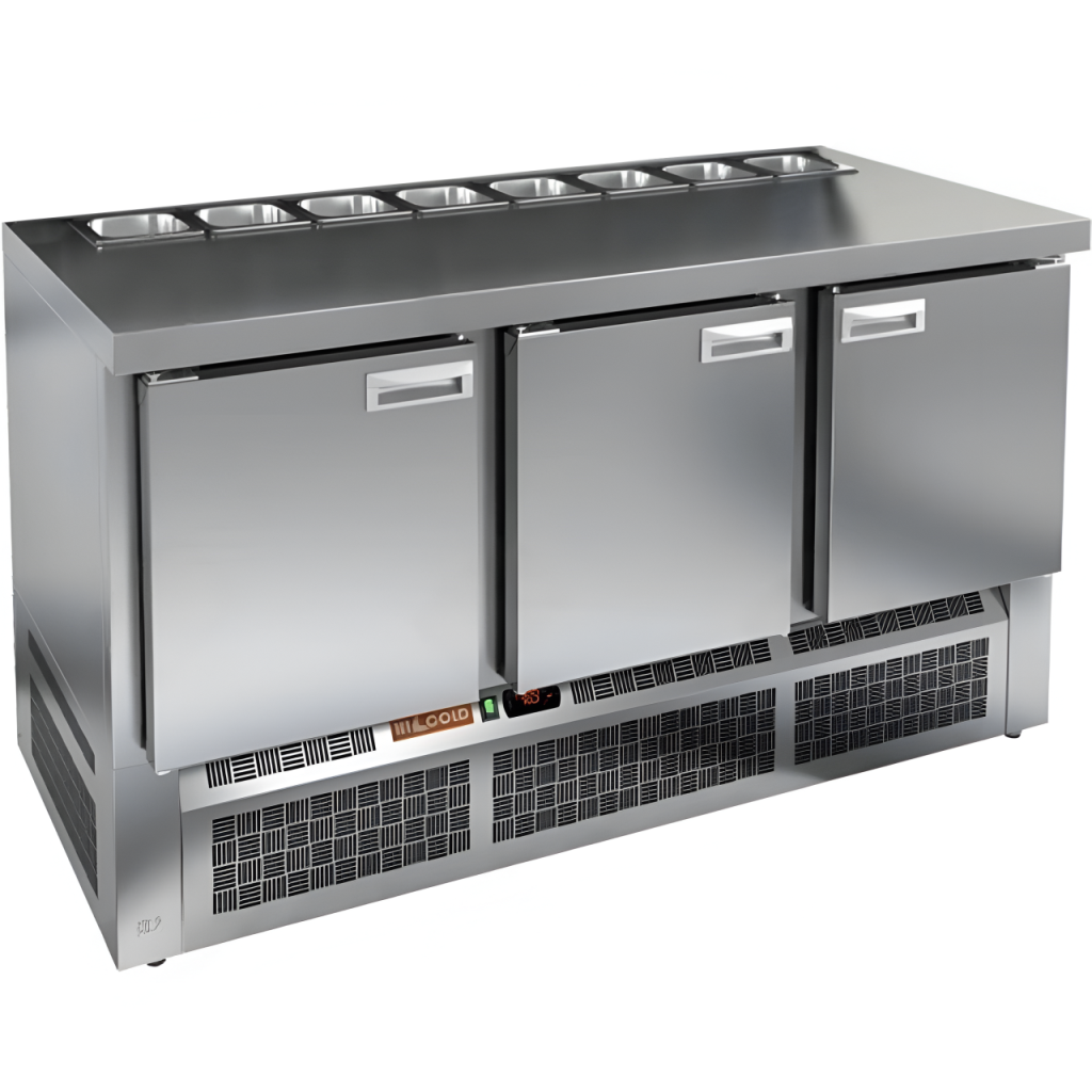 Каталог оборудования Холодильное оборудованиеСтолы охлаждаемыеСтолы холодильные для салатовСтол холодильный для салатов HiCold SLE2-111GN (1/6) О З без крышки Стол холодильный для салатов HiCold SLE2-111GN (1/6) О З без крышки Код товара: 064-868 Поделиться: WhatsAppTelegram СравнитьДобавить в КПВ избранное 0 149 302 ₽ В корзину 0 шт Под заказСамовывоз сегодня бесплатно Взять в кредит Купить в лизинг Получить консультацию в WhatsApp Описание Характеристики Отзывы 0 Инструкции 2 Стол холодильный для салатов HiCold SLE2-111GN (1/6) О З без крышки предназначен для предприятий общественного питания и торговли. Он используется для хранения, охлаждения и обработки ингредиентов, применяемых при приготовлении салатов, пиццы, закусок и других блюд. Модель объединяет удобную рабочую поверхность и охлаждаемый отсек, позволяя повару иметь все необходимое под рукой. Конструкция выполнена из прочной нержавеющей стали, устойчивой к коррозии и легкой в уходе. Особенности модели: Электронная панель управления — точная настройка температуры и контроль за режимами работы. 3 вместительные внутренние полки — рациональное распределение хранения. Салат-бар вмещает 8 гастроемкостей — оптимальная организация ингредиентов. Автоматические доводчики дверей с фиксацией в открытом положении — удобно при загрузке и выгрузке продуктов. Магнитные уплотнители — легко заменяются, обеспечивая герметичность. Открытая агрегатная часть — упрощает техническое обслуживание. Регулируемые по высоте ножки — позволяют установить оборудование на любой поверхности. Максимальная глубина гастроемкостей — 100 мм — подходит для хранения различных типов продуктов. Задняя стенка из нержавеющей стали, включая агрегатный отсек — прочность и гигиеничность. Столешница толщиной 50 мм без борта — полноценная рабочая зона. Теплоизоляция толщиной 50 мм — сохраняет стабильный температурный режим и снижает энергозатраты. HiCold SLE2-111GN (1/6) О З без крышки — это функциональный и надёжный салатный стол, сочетающий в себе удобство работы и эффективное охлаждение. Отличное решение для кухни с интенсивной нагрузкой. Изображение товара, представленного на фото, может отличаться от его фактического вида. Показать все Габаритные размеры1485×700×850 ммДиапазон рабочей температурыот +2 до +10 °CРасположение агрегатаНижнее Материал столешницыНержавеющая Тип столаС дверьми Тип двериГлухая Объём375 лКоличество дверей3 штТип гастроемкостейGN 1/6 Размер полки530×325 ммНапряжение220 ВМощность0,22 кВтТип охлажденияДинамическое Тип оттайкиАвтоматическая СтолешницаБез борта Габариты в упаковке1700×850×1080 ммВес нетто115 кгВес брутто160 кгБрендHicold Оставить отзыв Еще никто не оставил отзыв на этот товар Паспорт на HICOLD SLE2-111GN О З.pdfДекларация о соответствии.pdf Ранее просмотрено Под заказ 43 081 ₽ Дверь холодильная распашная одностворчатая НТ-РДО-800*2100/80 (с металлической рамой) Под заказ 204 921 ₽ Стол холодильный для салатов HiCold SL1-22GN (1/3) О с крышкой Под заказ 143 722 ₽ Стол холодильный для салатов HiCold SL1-11GN (1/3) О с крышкой Под заказ 103 041 ₽ Стол холодильный для салатов HiCold SLE3-1GN полипропилен, без крышки Под заказ 166 221 ₽ Стол холодильный для салатов HiCold SL1-11GN (1/3) О М с крышкой Под заказ 2 822 456 ₽ Камера шоковой заморозки Polair BCF 80.1.T4inox Под заказ 91 546 ₽ Витрина кондитерская Carboma K70 N 1,3 (K70 N 1,3-1 LIGHT FLANDRIA) хлебная, со стеклом