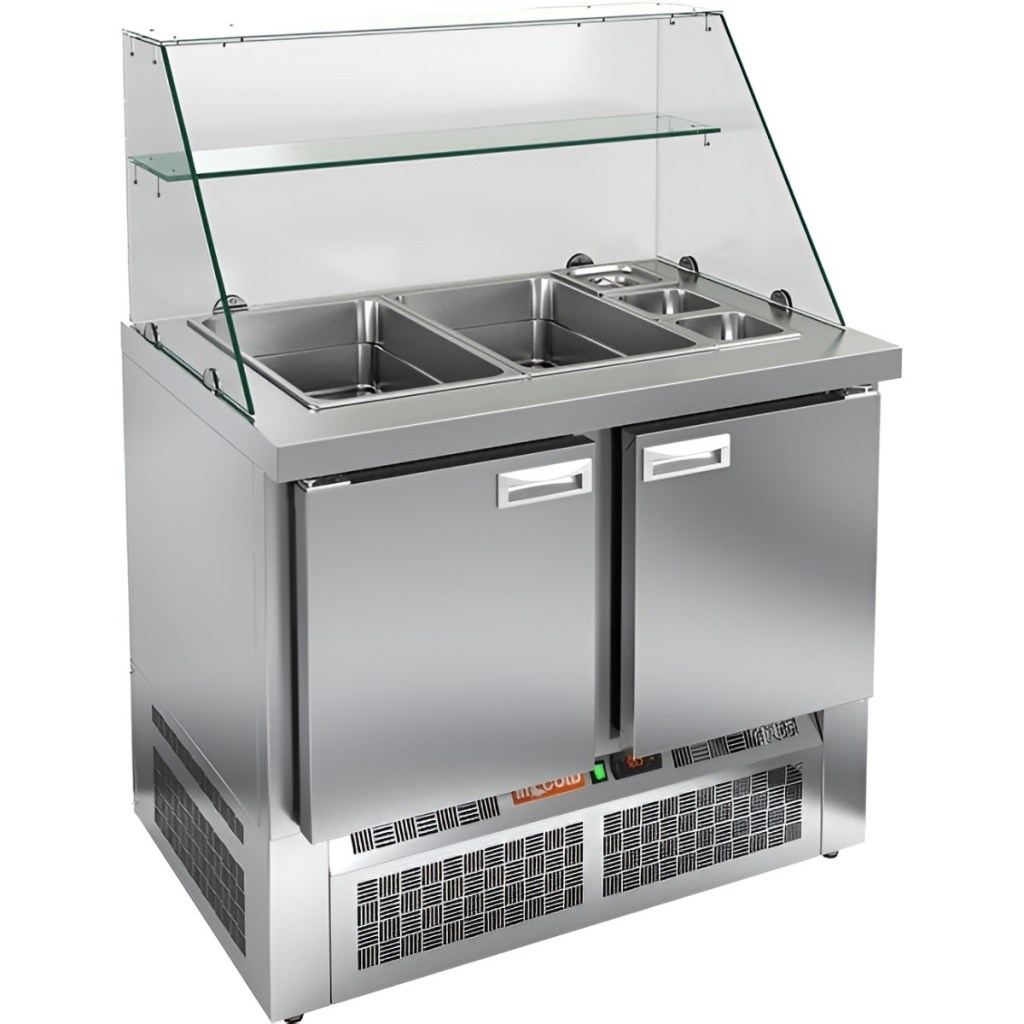 ысокое стекло предназначен для охлаждения и кратковременного хранения продуктов, используемых при приготовлении салатов, закусок, сэндвичей и других блюд. Он идеально подходит для предприятий общественного питания и торговли, где требуется удобный доступ к охлаждённым ингредиентам.