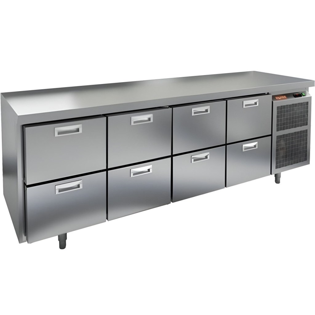 Каталог оборудования Холодильное оборудованиеСтолы охлаждаемыеСтолы холодильные среднетемпературныеСтол холодильный среднетемпературный HiCold GN 2222/TN О М Стол холодильный среднетемпературный HiCold GN 2222/TN О М Код товара: 065-427 Поделиться: WhatsAppTelegram СравнитьДобавить в КПВ избранное 0 312 291 ₽ В корзину 0 шт Под заказСамовывоз сегодня бесплатно Взять в кредит Купить в лизинг Получить консультацию в Max Описание Характеристики Отзывы 0 Инструкции 2 Стол холодильный среднетемпературный HiCold GN 2222/TN О М — это профессиональное оборудование, предназначенное для кратковременного хранения скоропортящихся продуктов и напитков, а также удобной подготовки ингредиентов на предприятиях общественного питания и торговли. Модель сочетает функциональность, надежность и эргономичный дизайн. Ключевые особенности: 8 выдвижных ящиков обеспечивают удобный доступ к продуктам и рациональную организацию пространства. Электронная панель управления позволяет просто и точно регулировать температуру. Автоматические доводчики обеспечивают мягкое и плотное закрывание ящиков. Легкозаменяемые магнитные уплотнители гарантируют надежную герметичность. Колёса (2 со стопором, 2 без стопора) — обеспечивают мобильность и удобство размещения стола на кухне. Корпус и столешница из нержавеющей стали обеспечивают долговечность, устойчивость к коррозии и простоту в уходе. Столешница без борта, толщина 50 мм — увеличенная рабочая площадь, устойчивая к нагрузкам и механическому воздействию. Толщина теплоизоляции — 50 мм способствует энергоэффективности и стабильному температурному режиму. Рабочий температурный режим сохраняется при температуре окружающей среды от +12 до +37 °C. HiCold GN 2222/TN О М — это многофункциональный холодильный стол, идеально подходящий для профессиональной кухни. Конструкция позволяет удобно распределять ингредиенты, а эргономичные выдвижные модули обеспечивают быстрый доступ к продуктам. Высокое качество материалов, надежные комплектующие и простота эксплуатации делают этот стол незаменимым помощником в условиях интенсивной ежедневной работы.Изображение товара, представленного на фото, может отличаться от его фактического вида. Показать все Габаритные размеры2280×700×850 ммДиапазон рабочей температурыот -2 до +10 °CРасположение агрегатаБоковое Материал столешницыНержавеющая Тип столаС ящиками Объём660 лКоличество ящиков8 штНапряжение220 ВМощность0,48 кВтТип охлажденияДинамический Тип оттайкиАвтоматическая СтолешницаБез борта Габариты в упаковке2420×850×1000 ммВес нетто150 кгВес брутто190 кгБрендHicoldВсе холодильные столы HicoldВсе нержавеющие холодильные столы Все холодильные столы без борта Оставить отзыв Еще никто не оставил отзыв на этот товар Паспорт на HICOLD GN 2222/TN О М.pdfДекларация о соответствии.pdf Похожие товары Перейти в каталог Под заказ 148 851 ₽ Стол холодильный среднетемпературный HiCold SN 1111/TN W В наличии 119 067 ₽ Стол холодильный среднетемпературный Polair TM4GN-GС С этим товаром покупают В наличии 181 658 ₽ Шкаф холодильный универсальный Polair CV 114-G В наличии 9 838 ₽ Индукционная плита HURAKAN HKN-ICW35ML WOK Ранее просмотрено В наличии 279 891 ₽ Стол холодильный среднетемпературный HiCold GNE 2222/TN О Под заказ 109 791 ₽ Стол холодильный среднетемпературный HiCold GNE 11/TN З Под заказ 271 405 ₽ Стол холодильный среднетемпературный HiCold GNE 1122/TN камень Под заказ 136 611 ₽ Стол холодильный 