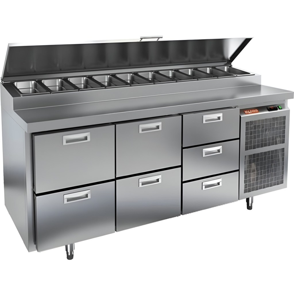 Каталог оборудования Холодильное оборудованиеСтолы охлаждаемыеСтолы холодильные для пиццыСтол холодильный для пиццы HiCold PZ1-223GN (1/3H) Стол холодильный для пиццы HiCold PZ1-223GN (1/3H) Код товара: 064-711 Поделиться: WhatsAppTelegram СравнитьДобавить в КПВ избранное 0 321 471 ₽ В корзину 0 шт Под заказСамовывоз сегодня бесплатно Взять в кредит Купить в лизинг Получить консультацию в WhatsApp Описание Характеристики Отзывы 0 Стол холодильный для пиццы HiCold PZ1-223GN (1/3H) — профессиональное оборудование для предприятий общественного питания и торговли. Он сочетает рабочую поверхность для раскатки теста и подготовки ингредиентов с охлаждаемым блоком для кратковременного хранения скоропортящихся продуктов и напитков. Такое решение обеспечивает максимальное удобство — все необходимые компоненты всегда находятся под рукой. Корпус и столешница выполнены из нержавеющей стали, что гарантирует долговечность, устойчивость к повреждениям и лёгкость ухода. Основные особенности: Нержавеющая столешница и корпус — прочность, гигиеничность и лёгкость очистки Динамическая система охлаждения — равномерное распределение холода Автоматическая оттайка — стабильная работа без образования наледи Электронная панель управления — точная настройка температуры 7 выдвижных ящиков — удобная организация внутреннего пространства без дверцы Автоматические доводчики ящиков — комфорт при работе Легкозаменяемые магнитные уплотнители — поддержание герметичности Открытая агрегатная часть — лёгкий доступ для обслуживания Регулируемые по высоте ножки — установка на неровных поверхностях Максимальная глубина гастроёмкостей: 100 мм Глубина рабочей поверхности: 324 мм Толщина столешницы и теплоизоляции: 50 мм Вместимость салат-бара: до 10 гастроёмкостей Стол холодильный HiCold PZ1-223GN (1/3H) — надёжный и функциональный холодильный стол для пиццы и салатов. Отсутствие дверцы и продуманная система хранения обеспечивают быстрый доступ к ингредиентам, удобство эксплуатации и высокую производительность на профессиональной кухне.Изображение товара, представленного на фото, может отличаться от его фактического вида. Показать все Габаритные размеры1835×700×1000 ммДиапазон рабочей температурыот +2 до +10 °CРасположение агрегатаБоковое Материал столешницыНержавеющая Тип столаС ящиками Объём505 лТип гастроемкостейGN 1/3 Количество ящиков7 штНапряжение220 ВМощность0,5 кВтТип охлажденияДинамическое Тип оттайкиАвтоматическая Габариты в упаковке2000×850×1140 ммВес нетто172 кгВес брутто200 кгБрендHicoldВсе холодильные столы для пиццы HicoldВсе нержавеющие холодильные столы для пиццы Оставить отзыв Еще никто не оставил отзыв на этот товар Ранее просмотрено Под заказ 361 791 ₽ Стол холодильный для пиццы HiCold PZ4-11/GN камень Под заказ 297 352 ₽ Стол холодильный для пиццы HiCold PZ3-211/GN камень Под заказ 268 552 ₽ Стол холодильный для пиццы HiCold PZ3-13/GN камень Под заказ 207 801 ₽ Стол холодильный для пиццы HiCold PZE1-111GN (1/3) камень Под заказ 358 552 ₽ Стол холодильный для пиццы HiCold PZ3-133/GN камень