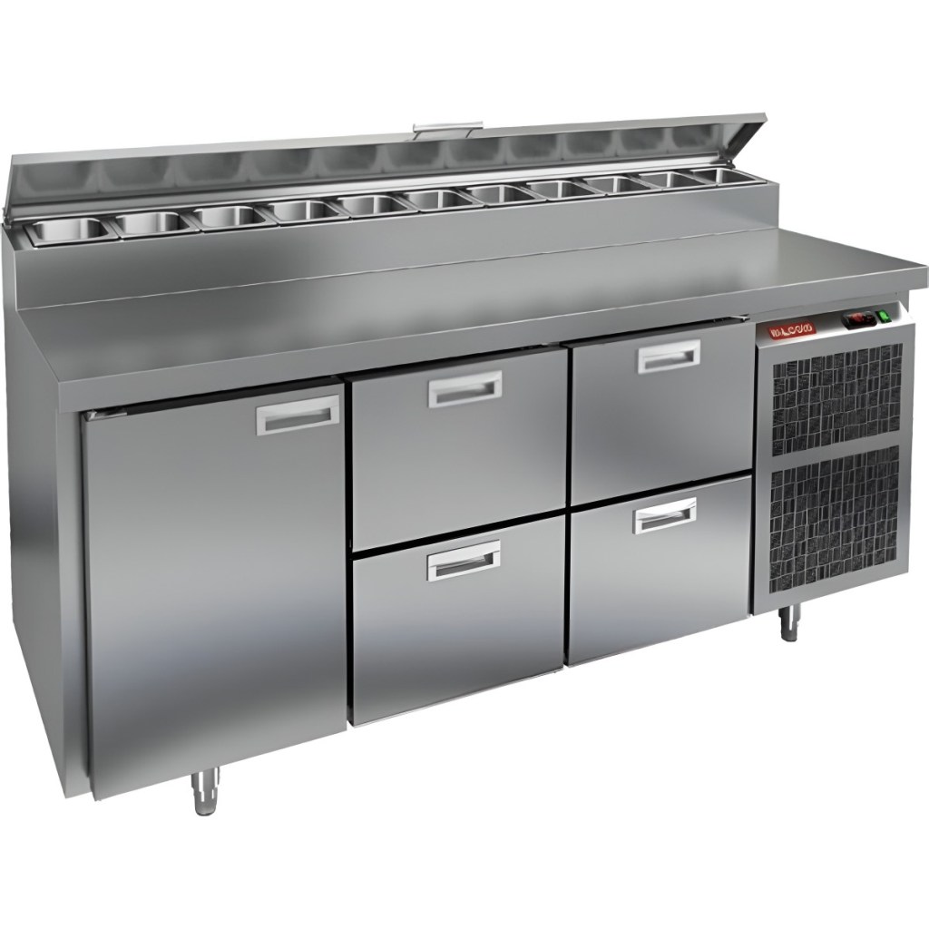 Каталог оборудования Холодильное оборудованиеСтолы охлаждаемыеСтолы холодильные для пиццыСтол холодильный для пиццы HiCold PZ2-122GN (1/6) Стол холодильный для пиццы HiCold PZ2-122GN (1/6) Код товара: 064-756 Поделиться: WhatsAppTelegram СравнитьДобавить в КПВ избранное 0 275 572 ₽ В корзину 0 шт Под заказСамовывоз сегодня бесплатно Взять в кредит Купить в лизинг Получить консультацию в WhatsApp Описание Характеристики Отзывы 0 Стол холодильный для пиццы HiCold PZ2-122GN (1/6) предназначен для кухонь и предприятий общественного питания. Он используется для раскатки теста, подготовки ингредиентов для пиццы, салатов и других блюд, а также для охлаждения и кратковременного хранения скоропортящихся продуктов. Модель совмещает нержавеющую рабочую поверхность и охлаждаемый отсек с 1 дверью и 4 ящиками, обеспечивая удобный доступ к ингредиентам и эффективное хранение. Особенности: Динамическая система охлаждения для равномерного поддержания температуры Автоматическая оттайка для удобного обслуживания Электронная панель управления для точной настройки параметров Вместительная внутренняя полка формата GN 1/1 (размер 530×325 мм) 1 дверь и 4 вместительных ящика для хранения ингредиентов Автоматические доводчики дверей с фиксатором открытого положения Легкозаменяемые магнитные уплотнители для герметичности Открытая агрегатная часть для легкого доступа к компонентам Регулируемые по высоте ножки для устойчивости Нержавеющая столешница глубиной 486 мм и толщиной 50 мм — устойчива к коррозии, легко моется и гигиенична Толщина теплоизоляции: 50 мм Максимальная глубина гастроемкостей: 100 мм Вместимость салат-бара: 11 гастроемкости Стол холодильный HiCold PZ2-122GN (1/6) — это надежный и функциональный стол для пиццы. Он объединяет рабочую поверхность и охлаждаемый отсек, упрощает хранение и подготовку ингредиентов, обеспечивает удобство работы повара и соответствует стандартам профессиональной кухни. Изображение товара, представленного на фото, может отличаться от его фактического вида. Показать все Габаритные размеры1835×700×1000 ммДиапазон рабочей температурыот +2 до +10 °CРасположение агрегатаБоковое Материал столешницыНержавеющая Тип столаС дверьми и ящиками Тип двериГлухая Объём350 лТип гастроемкостейGN 1/6 Количество дверей1 штКоличество ящиков4 штРазмер полки530×325 ммНапряжение220 ВМощность0,5 кВтТип охлажденияДинамическое Тип оттайкиАвтоматическая Габариты в упаковке2000×850×1140 ммВес нетто172 кгВес брутто210 кгБрендHicoldВсе холодильные столы для пиццы HicoldВсе нержавеющие холодильные столы для пиццы Оставить отзыв Еще никто не оставил отзыв на этот товар Ранее просмотрено Под заказ 260 272 ₽ Стол холодильный для пиццы HiCold PZ2-113GN (1/6) Под заказ 147 321 ₽ Стол холодильный для пиццы HiCold PZ1-1GN (1/3) В наличии 250 642 ₽ Стол холодильный для пиццы HiCold PZ2-1111GN (1/6)