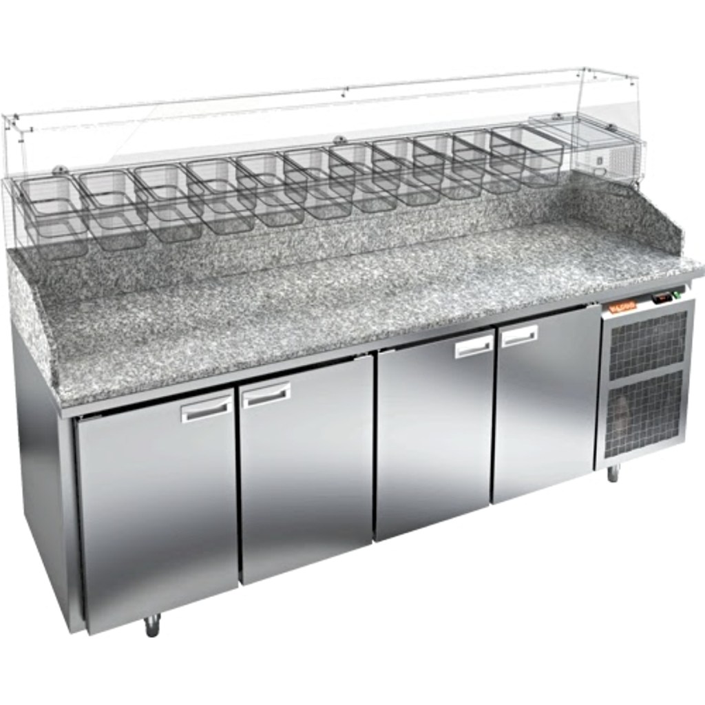 Стол холодильный для пиццы HiCold PZ3-1111/SN камень предназначен для использования на предприятиях общественного питания и торговли. Он сочетает в себе удобную рабочую поверхность и охлаждаемый объем для хранения скоропортящихся продуктов и ингредиентов, необходимых для приготовления пиццы, салатов и других блюд. Благодаря такой конструкции повар всегда имеет всё необходимое под рукой, что значительно ускоряет процесс работы. Корпус стола выполнен из нержавеющей стали, а столешница — из прочного и гигиеничного гранита, обеспечивающего комфорт при раскатке теста и легкость в уходе.