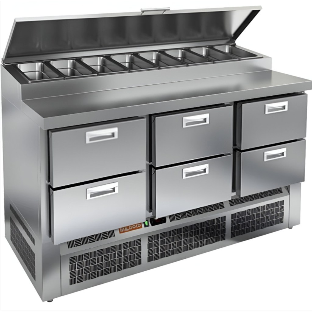 Каталог оборудования Холодильное оборудованиеСтолы охлаждаемыеСтолы холодильные для пиццыСтол холодильный для пиццы HiCold PZE1-222GN (1/3) Стол холодильный для пиццы HiCold PZE1-222GN (1/3) Код товара: 064-727 Поделиться: WhatsAppTelegram СравнитьДобавить в КПВ избранное 0 278 361 ₽ В корзину 0 шт Под заказСамовывоз сегодня бесплатно Взять в кредит Купить в лизинг Получить консультацию в WhatsApp Описание Характеристики Отзывы 0 Стол холодильный для пиццы HiCold PZE1-222GN (1/3) — профессиональное оборудование для предприятий общественного питания и торговли. Он предназначен для раскатки теста и подготовки ингредиентов, используемых при приготовлении пиццы, салатов и других блюд, а также для охлаждения и кратковременного хранения скоропортящихся продуктов и напитков. Совмещение рабочей поверхности и охлаждаемого блока значительно упрощает работу повара — все необходимые компоненты находятся под рукой. Корпус и столешница выполнены из нержавеющей стали, обеспечивая долговечность, устойчивость к повреждениям и лёгкость ухода. Основные особенности: Динамическая система охлаждения — равномерное распределение холода по всему объёму Автоматическая оттайка — стабильная работа без образования наледи Электронная панель управления — точная настройка температуры 6 выдвижных ящика — удобная организация внутреннего пространства Автоматические доводчики ящиков — комфорт при работе Легкозаменяемые магнитные уплотнители — поддержание герметичности Открытая агрегатная часть — лёгкий доступ к техническим элементам Регулируемые по высоте ножки — установка на неровных поверхностях Максимальная глубина гастроёмкостей: 100 мм Глубина рабочей поверхности: 324 мм Толщина столешницы: 50 мм Толщина теплоизоляции: 50 мм Вместимость салат-бара: до 8 гастроёмкостей HiCold PZE1-222GN (1/3) с четырьмя выдвижными ящиками — надёжный и функциональный холодильный стол для пиццы и салатов. Продуманная организация хранения и удобство эксплуатации обеспечивают быстрый доступ к ингредиентам и повышают производительность на профессиональной кухне.Изображение товара, представленного на фото, может отличаться от его фактического вида. Показать все Габаритные размеры1485×700×990 ммДиапазон рабочей температурыот +2 до +10 °CРасположение агрегатаНижнее Материал столешницыНержавеющая Тип столаС ящиками Объём375 лТип гастроемкостейGN 1/3 Количество ящиков6 штНапряжение220 ВМощность0,22 кВтТип охлажденияДинамическое Тип оттайкиАвтоматическая Габариты в упаковке1680×840×1170 ммВес нетто115 кгВес брутто153 кгБрендHicoldВсе холодильные столы для пиццы HicoldВсе нержавеющие холодильные столы для пиццы Оставить отзыв Еще никто не оставил отзыв на этот товар Ранее просмотрено Под заказ 306 171 ₽ Стол холодильный для пиццы HiCold PZ1-222GN (1/3H) Под заказ 250 822 ₽ Стол холодильный для пиццы HiCold PZE1-1112/GN (1/3)
