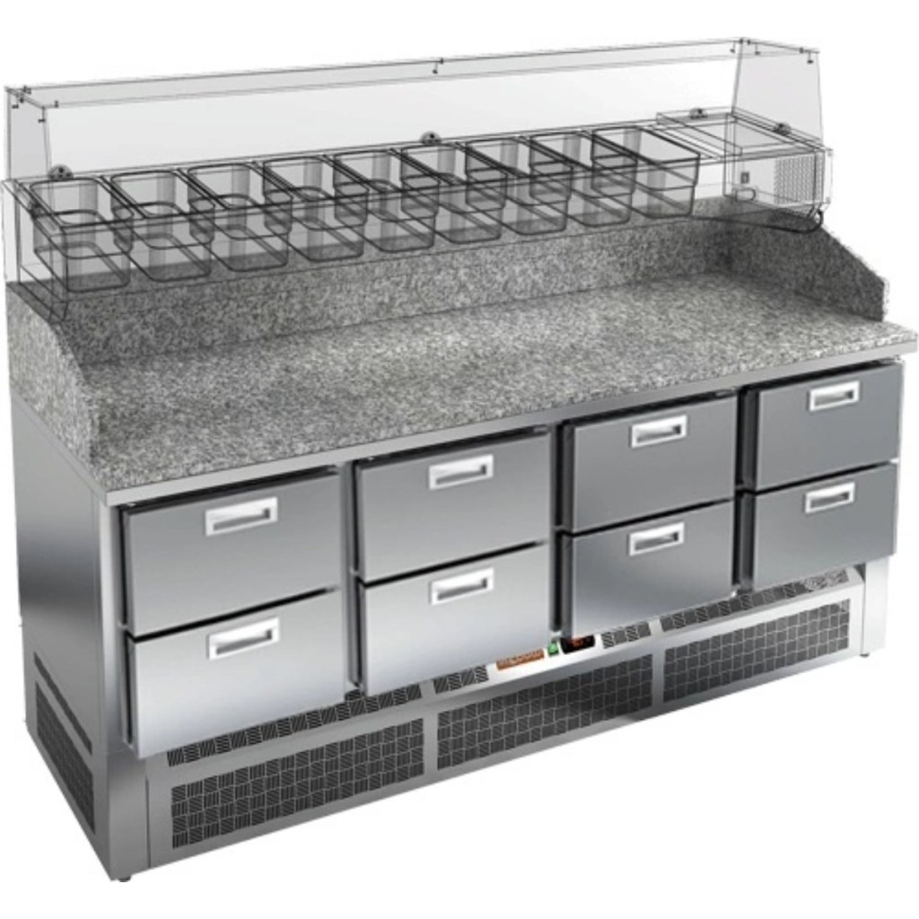 Каталог оборудования Холодильное оборудованиеСтолы охлаждаемыеСтолы холодильные для пиццыСтол холодильный для пиццы HiCold PZE3-222/GN камень Стол холодильный для пиццы HiCold PZE3-222/GN камень Код товара: 064-994 Поделиться: WhatsAppTelegram СравнитьДобавить в КПВ избранное 0 343 342 ₽ В корзину 0 шт Под заказСамовывоз сегодня бесплатно Взять в кредит Купить в лизинг Получить консультацию в WhatsApp Описание Характеристики Отзывы 0 Стол холодильный для пиццы HiCold PZE3-222/GN камень предназначен для использования в пиццериях, кафе, магазинах и ресторанах. Он идеально подходит для раскатки теста, подготовки ингредиентов для пиццы и кратковременного хранения скоропортящихся продуктов. Витрина приобретается отдельно. Особенности модели: Корпус: нержавеющая сталь — прочный, гигиеничный и долговечный Столешница: гранит — устойчива к царапинам, ударам и температурным нагрузкам Охлаждение: динамическое для равномерного поддержания температуры Оттайка: автоматическая — удобство и экономия времени Панель управления: электронная — точная настройка температуры Ножки: регулируемые по высоте — устойчивость на неровной поверхности Ящики: 6 выдвижных ящика — удобное хранение ингредиентов Уплотнители: легкозаменяемые магнитные — герметичность и простота обслуживания Толщина теплоизоляции: 50 мм — сохранение холода и энергоэффективность Рабочая поверхность: глубина 680 мм — удобство работы HiCold PZE3-222/GN камень — надёжный и функциональный холодильный стол с гранитной столешницей, который сочетает прочность, удобство в работе и эффективное охлаждение продуктов. Он станет универсальным решением для профессиональной кухни, где важны скорость, организация и сохранение свежести ингредиентов. Изображение товара, представленного на фото, может отличаться от его фактического вида. Показать все Габаритные размеры1485×700×1050 ммДиапазон рабочей температурыот +2 до +10 °CРасположение агрегатаНижнее Материал столешницыГранитная Тип столаС ящиками Объём375 лКоличество ящиков6 штРазмер полки530×325 ммНапряжение220 ВМощность0,2 кВтТип охлажденияДинамическое Тип оттайкиАвтоматическая Габариты в упаковке1700×850×1280 ммВес нетто227 кгВес брутто280 кгБрендHicoldВсе холодильные столы для пиццы HicoldВсе нержавеющие холодильные столы для пиццы Оставить отзыв Еще никто не оставил отзыв на этот товар Ранее просмотрено Под заказ 391 221 ₽ Стол холодильный для пиццы HiCold PZ3-2321/GN камень